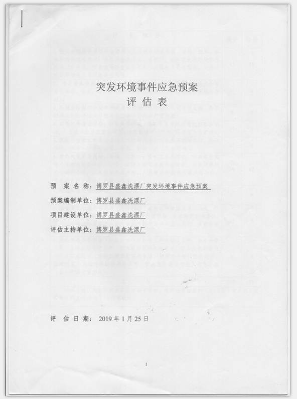 已制訂《博羅縣盛鑫洗漂廠環(huán)境風險評估報告》,并于2019年1月25日上報博羅縣環(huán)境保護局備案;